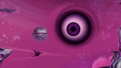 This giant living eyeball creature lives inside a wormhole in Dimension X.