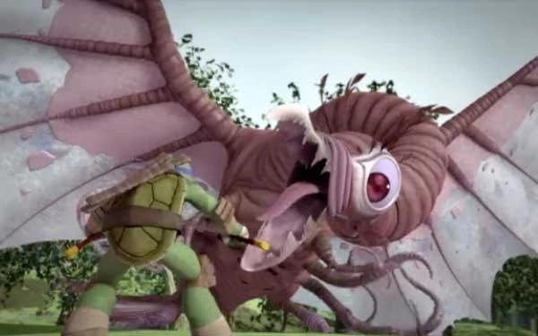 Open with a flashback to the previous episode wherein Donnie and Casey are fighting the Speed Demon and are about to be defeated by it when the arrival of the others in the Party Wagon saves the day, as they slam into the mutant car, sending it flying over the nearby cliff. Simultaneously, an eagle eyes a salmon, which has just eaten a worm, swimming in a stream down below and grabs it in its talons before flying off with its catch. Unfortunately for the bird, it happens to fly right by the Speed Demon as it plummets over the cliff, resulting in the bird being doused in Mutagen from head to toe, along with the salmon in its talons, in addition to the worm recently consumed by the fish, causing the three to amalgamate. Now a repulsive Chimera, the former eagle flies off into the night.
