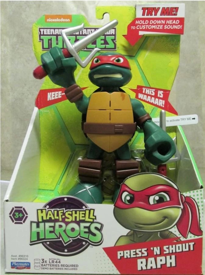 Press 'N Shout Raph is six inches high. Hold down head to customize sound!