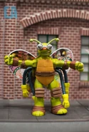 The Turflytle is an alter-ego and suit worn by Michelangelo. It first appeared in The Mutation Situation to grab Kirby's attention. This was also used in The Lonely Mutation of Baxter Stockman.