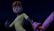 Human Form: In disguise, Mom is an exact replica of Mrs. O'Neil, the mother of April. She has short blonde locks with dark green eyes. She wears a little blue and pink necklace around her neck and a hanging locket also. She is featured with a purple vest and a black shirt. To top her feet, she wears gold and bronze heals.