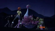Buried Secrets: The Mom-Thing was frozen in a secret Kraang Scout Ship under the O'Neil Family Farmhouse. She was in her mother O'Neil form. She wanted April to leave the Turtles and run away with her. Michelangelo suspected something was not right with Mrs. O'Neil and followed her into the woods. Mrs O'Neil was spilling Mutagen Ooze onto the ground! Mikey attacked her but Mom-Thing caught him. Later on the Thing shape shiffed into Mikey and attacked Donnie, it then turned into Donnie! Donnie-Thing attacked the wounded Leonardo turning into Leo-Thing. Finally it attacked the rest. The Thing turned into it's true form as a fleshy, grotesque, Kraang, spider-like monster. It told April to "Join them" and revealed the remaining turtles in it's belly! April used her psychic energy to make the Mom-Thing explode into a pile of pink flesh and green goo. As a result of her destruction, all those consumed by the Mom-Thing were shown to be released alive and well covered in slime.