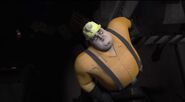The Noxious Avenger: Grunge is seen working as a garbage man when he gets hit in the face with a canister of Mutagen while investigating a commotion involving a fight between the Turtles and Bebop and Rocksteady. Having to have fallen into the dumpster, he mutates into a 6-foot-tall humanoid being made entirely out of garbage with an empty right eye socket and a half-exposed skeleton. Convinced by Joe Eyeball to be a hero when he finds the Purple Dragons mugging a man and manages to beat them up. The man witnesses the action and this makes it to Joan Grody's show as he becomes New York's new sensation, and giving the mutated Grunge a movie-based nickname, "Muckman". The Turtles and April find Muckman and Joe Eyeball where he blames the Turtles for his mutation yet both groups had to leave before Joan Grody could get a glimpse of the Turtles. Upon seeing the news of Muckman, Rocksteady and Bebop plan to take advantage of this and look for Muckman. When Rocksteady and Bebop find Muckman, he thinks they are with the Turtles until they claim that they aren't with him. He asks if the Turtles mutated them too and Bebop says yes. Muckman is convinced by Rocksteady and Bebop to help rob an abandoned Kraang lab claiming it contains a cure, and Joe Eyeball becomes suspicious of Rocksteady and Bebop's motives. The Turtles catch up to them as Muckman begins to attack. Bebop tells Muckman to get the chemical while he and Rocksteady get the Turtles. Muckman joins the fight and the Turtles are defeated. The Turtle try to reason with Muckman but they are all knocked out by Bebop's grenade. Rocksteady throws Muckman into the lab and is blasted by the Kraang's traps. Muckman finds the chemical and is blasted by another trap. Rocksteady takes the chemical from Muckman who is then helped by the Turtles. Muckman shoots slime at Rocksteady and Bebop, who retreat when the chemical explodes. Muckman covers up the Turtles existence by telling Joan Grody that they were just people in costumes like The Pulverizer.
