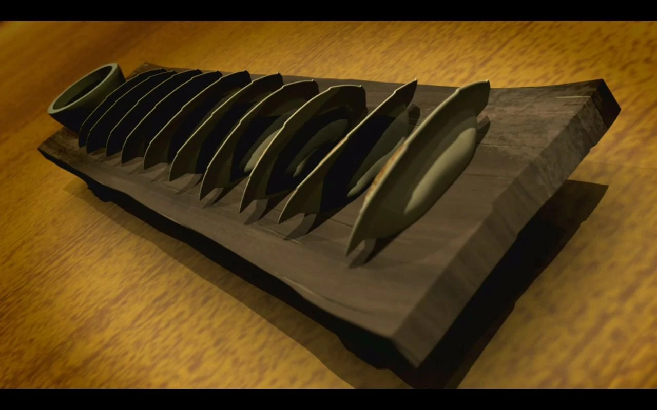 In the episode The Wrath of Tiger Claw, the Turtles fight over a single Pizza Gyoza at Mr. Murakami's noodle shop but, Leo manages to have it without even trying.
