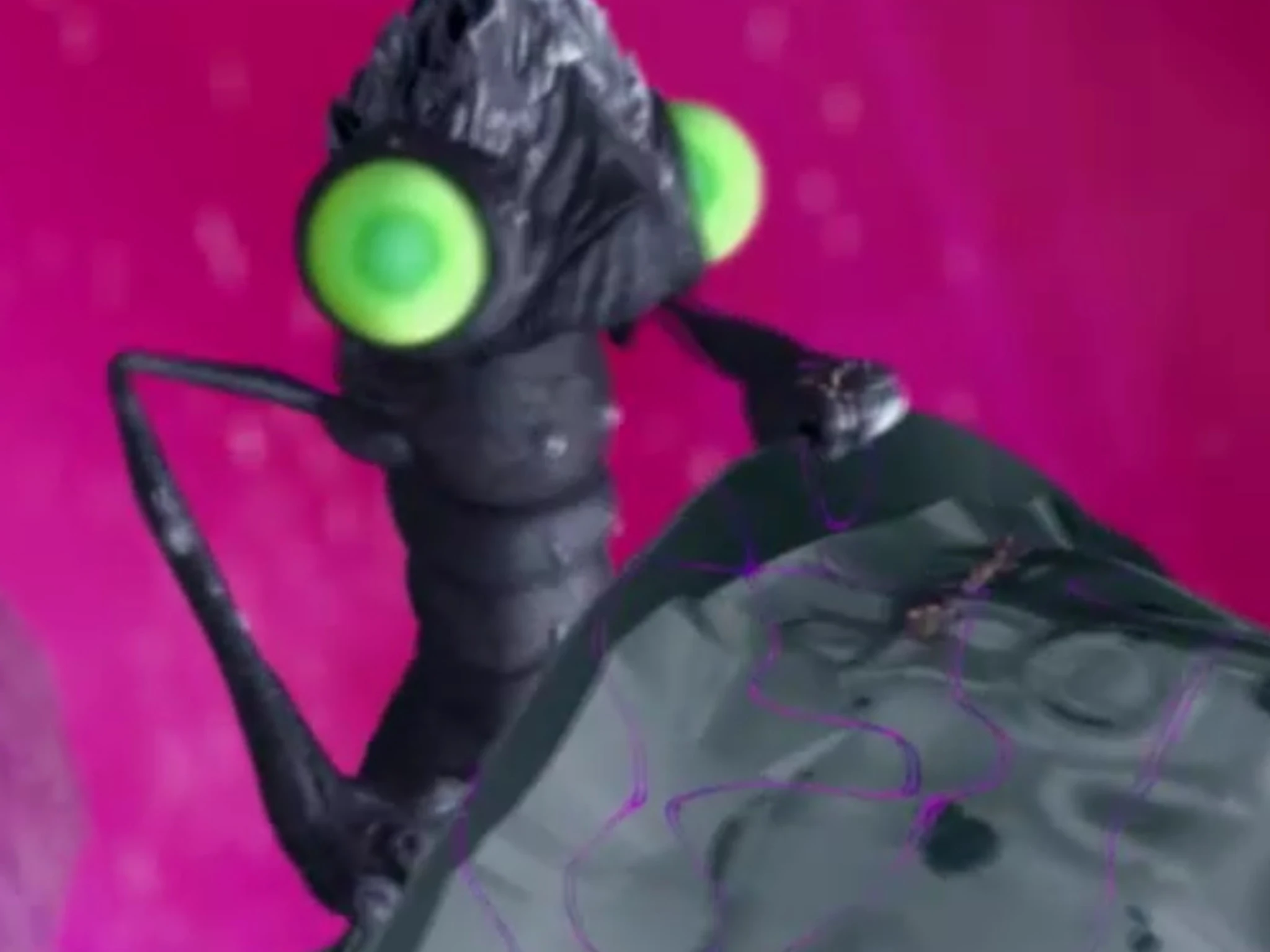 Rocktopus is a big two-legged insect with two large green glowing eyes that bug out from the sides of it's face. It has giant crystal rocks on the top of it's head, which resembles hair. It's body resembles a centipede's with two giant arms that are used for walking. He has a little alien lure on the top of it's head. It's only line sounds like it is saying "Mop Mop".