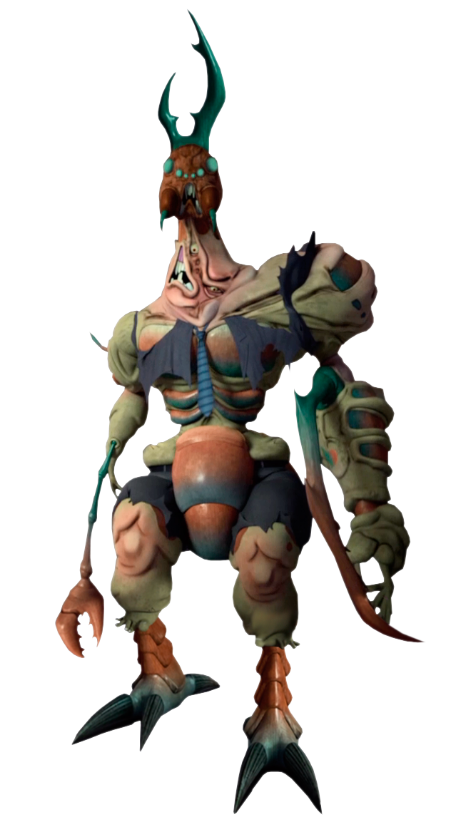 The Insecta Trifecta: Scumbug was originally a businessman (credited as "Business Jerk") who was kidnapped by Stockman-Fly before he can get to his meeting. As he is dropped into the mutagen vat containing the DNA of stag beetle and a spider, he vowed to sue. He then emerged as a stag beetle/spider mutant who Stockman-Fly enlisted into helping replenish Shredder's money vaults. He along with Antrax were defeated by the turtles.