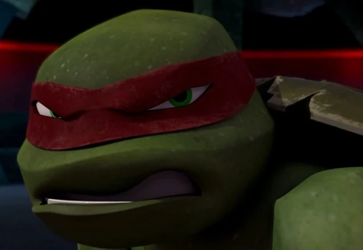 Up on the street, Vic is talking to a friend of his on the phone and tries to persuade them into buying the video that he has. The Turtles then surround Vic and he quickly hangs up on his friend. Raph wills himself to ask for the video back in a friendly manner, but, no matter what type of thing Raph says, Vic will not budge. Vic eventually says that he will give it to him in exchange for a million dollars, but the Turtles don't have any money, except for a few Canadian quarters that they found in the sewers. Raph then prepares to injure Vic, but the Kraang show up once more, interrupting him. Raph manages to throw a girder into the windshield of the van, toppling it over. A battle between the Turtles and the Kraang follows. During the confrontation, Vic is accidentally knocked into the back of the Kraang's van, where he then decides to take cover. Raph momentarily leaves the fight that he's in so he can get the video from Vic, but, when the man refuses and says that he'll hand it over to the Kraang, Raph begins to lose his temper once more. The Kraang end up driving away with both of them trapped inside of the van, but the Kraang push Raph out of the vehicle, allowing them to get away with Vic. After the fight between Leo and Raph, Leo then tells Raph to head back home because his temper is starting to get in their way. Raph reluctantly does so, angrily throwing his Sais onto the ground. Raph goes back to the Lair and exclaims that his anger will always make him the best fighter that the team has. He then confides in his pet turtle, Spike, and thanks him for trusting him. Unexpectedly, Splinter then enters the room and tells Raph a story about when he had lost his temper and fought the Shredder after he had insulted Splinter in front of Tang Shen, who the two men were 'competing' for. Splinter admits that, if he decided not to fight the Shredder and if he had let all of the insults pass over himself, he wouldn't have lost everything that he held dear. Raph appears to take this story to heart.